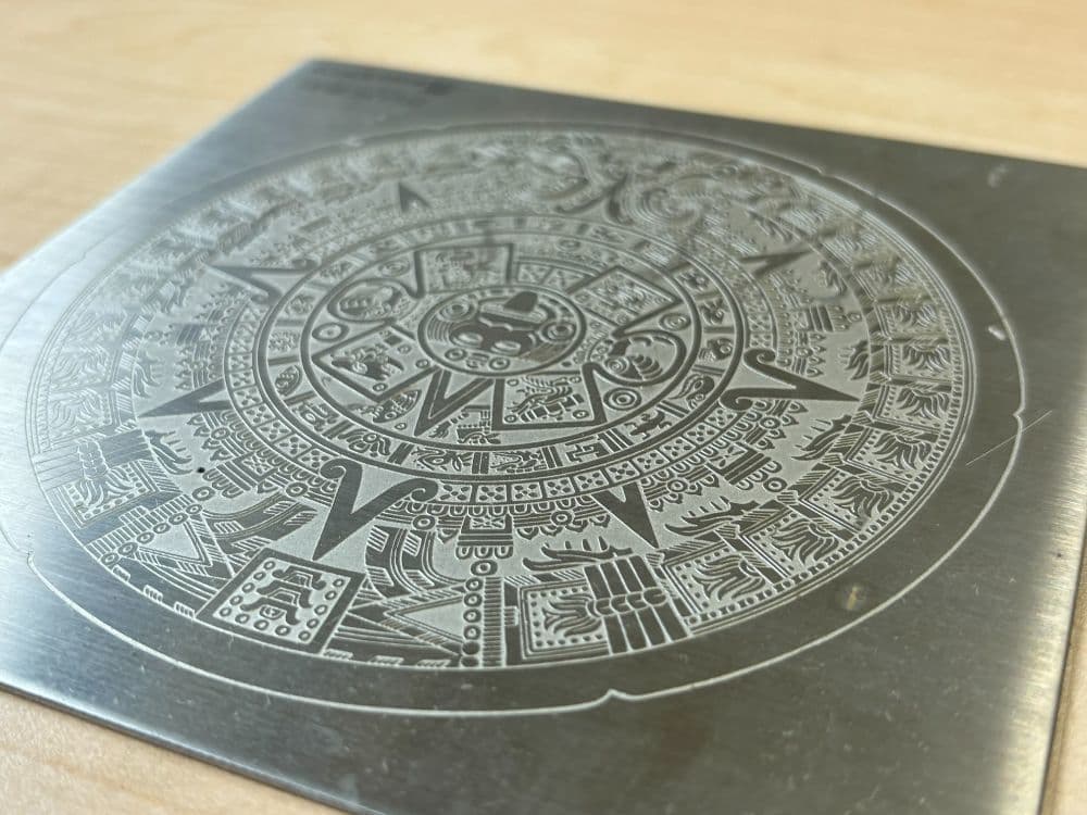 深彫エッチングは、金属の表面を選択的に腐食させ、凹凸を作り出すことで、精緻なデザインやマークを施す加工技術です。この技術により、金属表面に高い耐久性を持ったデザインを永続的に残すことが可能です。印刷やレーザー加工と比べても、深彫エッチングは金属そのものを削るため、消えることのない深みのあるデザインが特徴です。
